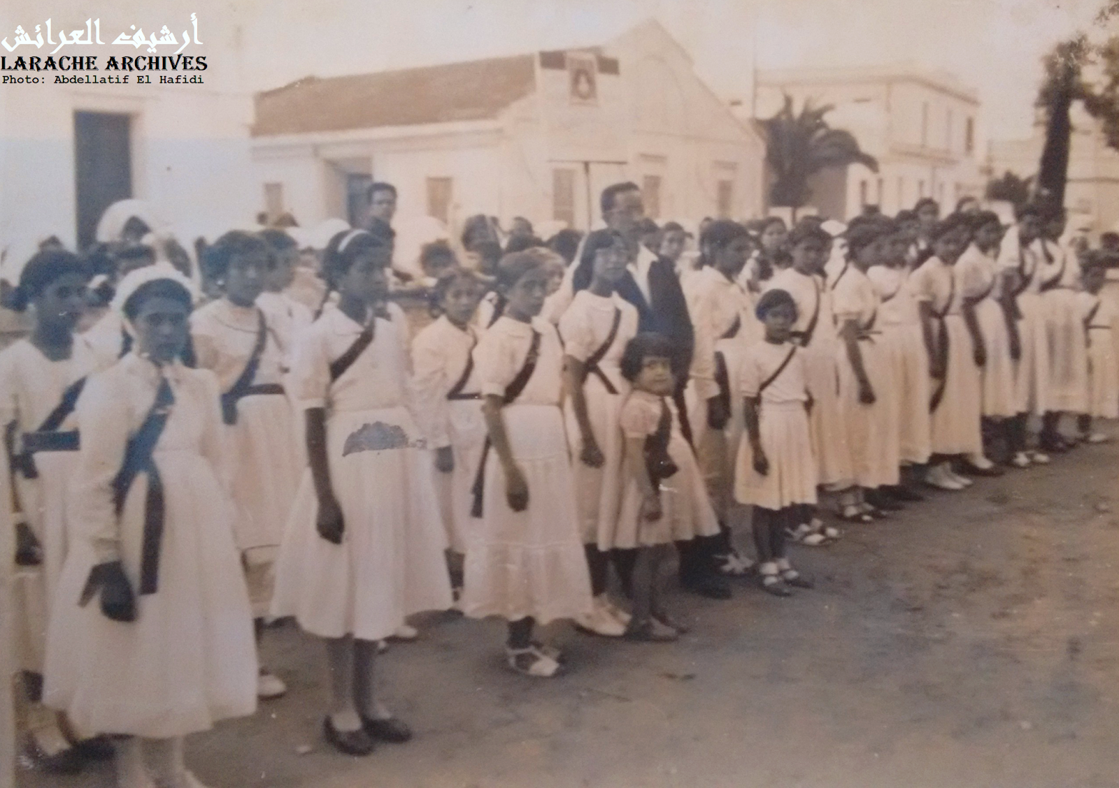 عند بوابة مقر حزب الاستقلال بالعرائشفتيات الانبعاثهذه صور حصرية لفتيات الانبعاث بالعرائش في خمسينيات القرن العشرين، كانت بشهادة جل المعاصرين، وجها مشرقا للتعليم المغربي العصامي المتمثل في المدرسة الأهلية التي بدأت في تدريس الفتيات ابتداءً من سنة 1939. تخرجت فتيات الانبعاث وفي رصيدهن مخزون هام من المعرفة والأخلاق والوطنية، منهن من واصلت دراستها خارج العرائش وخاصة بمدينة تطوان، ومنهن من لم تسنح لهن فرصة إكمال المشوار المعرفي واكتفين بمكاسب المرحلة، فتيات الانبعاث شكلت دون شك مشتلا لأمهات عظام شاركت الرجال في تحمل مسؤوليات البلاد والعباد بكل أمانة واقتدار.