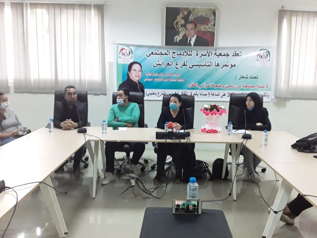 انعقد الجمع العام التأسيسي للفرع المحلي لجمعية الأسرة للإدماج المجتمعي بالعرائش تحت شعار ” لاتنمية مجتمعية دون تأمين وضعية المرأة والطفل” وذلك يوم الاحد 18 أكتوبر 2020 على الساعة الخامسة مساءا بالمركز الثقافي ليكسوس بالعرائش.