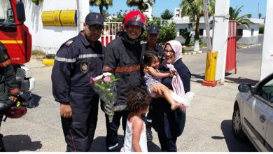 أم تهدي رجال الوقاية المدينة بالمحمدية باقة ورد بعد انقادهم لإبنتها